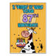 " Ich "lebe" es war Ihr 87. Geburtstag!" in Herden b-tägige Kuh des Spaßes, die eine Geburtstagskuchen-Grußkarte hält.