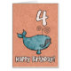 Alles Gute zum Geburtstagwal - 4 Jahre alte niedliche Buckelwal auf einer altersspezifischen Geburtstagsgrußkarte. Innerer Text: "Hoffnung haben Sie einen Wal einer Zeit!"