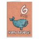 Alles Gute zum Geburtstagwal - 6 Jahre alte niedliche Buckelwal auf einer altersspezifischen Geburtstagsgrußkarte. Innerer Text: "Hoffnung haben Sie einen Wal einer Zeit!"