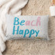 Strand glücklich oder glücklich Text mit Seestern in nautischen Netzwerk auf weißem Holz Hintergrund