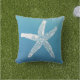 Schönes, blaues Seesternkissen im Außenbereich für Ihr Strandhaus oder eine Zuhause zum Thema Küste. Das blaue und weiße Seesterne Design wird auf beiden Seiten des Kopfkissens wiederholt.