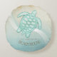 Dieses runde Kissen in den sanften Farben von Meer und Sand erlaubt es Ihnen, einfach Ihren eigenen Namen und Text mit der bereitgestellten Vorlage hinzuzufügen. Das einfache Schildkrötenbild auf einem beängstigenden, wasserfarbenen Hintergrund wird durch einen Wellenakzent in Aqua und Weiß hervorgehoben. Durchsuchen Sie ID623, um zu sehen, wie die Elemente am Meer und weitere Produkte mit diesem Design koordiniert werden.