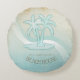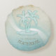 Dieses runde Kissen in den sanften Farben von Meer und Sand erlaubt es Ihnen, einfach Ihren eigenen Namen und Text mit der bereitgestellten Vorlage hinzuzufügen. Das einfache Palmenbild auf einem beängstigenden, wasserfarbenen Hintergrund wird durch einen Wellenakzent in Aqua und Weiß hervorgehoben. Durchsuchen Sie ID623, um zu sehen, wie die Elemente am Meer und weitere Produkte mit diesem Design koordiniert werden.