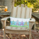 Handgezeichnete Strandfahne Outdoor Lumbar Kissen; mit cyan solide auf der Rückseite