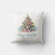 Mit diesem festlichen Kissen mit einem Weihnachtsbaum aus Muscheln und Seestern auf dem Kissen am Platz mit einem festlichen Seeblick an die Küste bringen Sie Ihren Zuhause einen fröhlichen Küstensturm. Inspiriert durch die Strandvibes von Orten wie Hawaii, Florida und den Bahamas, bringt dieses Design eine entspannte und dennoch fröhliche Touch in Ihre saisonale Dekoration. Das Aquarellwerk mit seiner sandigen Basis mit sanften aquamarinen Ozeanwellen und einem rustikalen, leicht bedrückten Stil sorgt für ein lässiges und dennoch elegantes Ambiente. "Happy Holidays" wird oben in einem eleganten Skript-Schriftart angezeigt, unten für einen individuelle Name oder eine kurze Nachricht, falls gewünscht. Das gleiche Design erscheint sowohl auf der Vorderseite als auch auf der Rückseite des Kissens, was es zu einem lustigen und festlichen Akzent aus jedem Winkel. Ideal für Zuhause an der Küste oder für alle, die den Strand während der Ferien Lieben. Alle Texte und Farben können auf Ihren Anzug angepasst werden.
