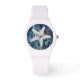 Beach Starfish Blue Rustic White Armbanduhr ist ein wunderschönes Stranddesign aus einem persönlichen Foto eines Florida Seesterfisch mit einem rustikalen blauen Holzputz Hintergrund. Passen Sie an, wenn Sie möchten. IN EINER VIELZAHL VON STILEN UND FARBEN VERFÜGBAR