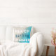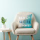 Beach Surfen Sommertypografie Sand Ocean Throw Kissen. Beach Surfen Sommertypografie in weißen und blauen Farben auf Sand und Ozean Hintergrund. Das Hotel ist sehr schön eingerichtet. Sommerurlaub vibe für Sie. Sie können jeden Text auf dem Kissen ändern.