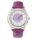 Niedliche Strandmädchen Armbanduhr inklusive einer hübschen lila Jakobswache-Muschel und farblich koordinierten extravaganten Nummern auf der Armbanduhr.