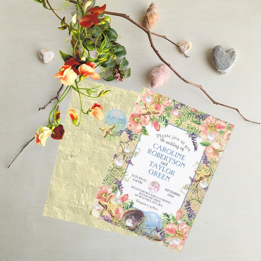 Beach Wedding Floral Seashells Coral Empfang Begleitkarte