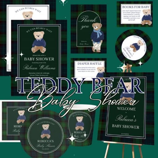Teddy bear green plaid baby showerDesignt von Ieva Jenciute
