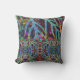 Das farbenfrohe, originelle Kunstwerk von ZoeSPEAK auf diesem 16" Kissen wurde im Stil eines Abend-Taschen oder Kupplung, mit einer Perlenbeschnittklappe, gemacht. Das Bild entstand aus Zoes originalem Nahaufnahme eines Korallenpalmenblattes mit anderen Blätter im Hintergrund. Die Blattfarben haben sich zu tropischer Blues, Gelbtönen und Grüntönen mit Rosa, Lila und Rot im dunklen Hintergrund entwickelt. Der rosa Schnitt der Lasche und die Blätter wurden mit grünen Perlen geschmückt und verleihen dem texturierten Stoffdesign einen handgenähten Look.