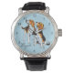 Uhr, Vintage Männeruhr mit schwarzem Lederarmband