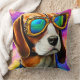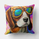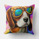 Beagle Sonnenbrillen über farbenfrohen Regenbogenfarben tragen.