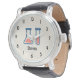 Uhr, Vintage Männeruhr mit schwarzem Lederarmband