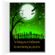 Ein beängstigendes Skelett in einem Friedhof mit Vollmond und grünem Himmelshintergrund. Sehr lustiges und beängstigendes Design für Ihre Halloween Grußkarten.