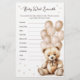 Mit der neuen "Baby Word Scramble" Spielkarte können Sie eine Touch Spielspass für jede Babydusche hinzufügen! Dieses wunderbare Spiel enthält eine Liste von Wortwürmern, die mit dem Baby verwandt sind, damit Ihre Gäste sich vom Spiel lösen können. Die erste Person, die alle Wörter richtig erraten hat, gewinnt! Das Design zeigt elegante, handbemalte Illustrationen eines süßen Teddybären mit einem Haufen weicher, neutraler Ballons. Diese Spielkarte ist mit feinen Konfetti-Punkten gesprenkelt und bietet eine warme und einladende Ästhetik. Es ist eine ideale Aktivität, um Ihre Gäste verlobt zu machen und zu lachen, während sie die bevorstehende Ankunft der Kleinen feiern. Füge dieses hübsche Spiel zu deiner Babydusche hinzu, um ein unvergessliches und unterhaltsames Erlebnis zu erleben! ANTWORTSCHLÜSSEL: PEDARI → DIAPER, ROLLSTER → STROLLER, RBIC → CRIB, TLETOB → FLASCHE, KELNATB → BLANKET, IFCAPIER → SCHNULLER, TRONIMO → MONITOR, SONNENSCHLAG → KINDERZIMMER, SIBB → BIBS, TTRALE → RATTLE