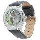 Uhr, Vintage Männeruhr mit schwarzem Lederarmband