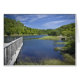 Ein fotografisches Bild der kleinen ländlichen Gemeinde des Bären Flusses in der atlantischen kanadischen Provinz Nova Scotia an der Ostküste Kanadas. Dieses Bild zeigt einen blauen Fluss, umgeben von grünen Feuchtgebieten, mit einem grünen Wald von Bäumen im Hintergrund und einem lebhaften blauen Himmel mit einigen weiße Wolken. Im Vordergrund befindet sich ein weißes Deck, das sich ins Wasser ausdehnt und die Augen durch das Bild ertränkt. Dieses Bild vermittelt ein Gefühl von Ruhe, Ruhe und Gelassenheit. Das Gefühl der Rückkehr zur Natur und Entspannung.