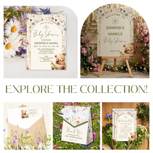 Machen Sie Ihre Mail mit diesem charmanten Rücksendelabel unvergesslich! Mit einem flauschigen Teddy, eingebettet in Wildblumen, ist es der süßeste Weg, Ihre Babydusche zu versenden, lädt ein oder danke. Niedlich, koordiniert und so schön!