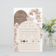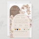 This design was created to make baby shower games feel just as stylish as the décor. Neutral taupe arches, soft boho florals, and a sweet teddy bear with balloons frame a fun “Baby Predictions & Advice” card guests will love filling out. Cute, cozy, and perfectly on-theme.