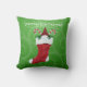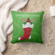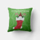 Dieses Kissen hat einen Bartknochen in einem rot-weiß gefliesten Weihnachtsfell-Strumpf mit heiligen Pflanze und Bonbons auf einem grünen Hintergrund mit hellgrünen Wirbel. Passen Sie Ihren Text mit der Vorlage an.