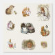 Dieses Druckmuster umfasst digital verbesserte Drucke, die aus den Geschichten und der niedlichen Kunst des Kinderbuchautors Beatrix Potter aus der Viktorianischen Zeit abgeleitet wurden, und enthält auch Figuren wie Miss Moppet, Mrs. Tittlemouse, Peter Rabbit, Squirrel Nutkin, Tom Kitten, etc. Sie können die Hintergrundfarbe anpassen.