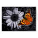 Foto eines gemalten Damenschmetterlinges, den ich auf einer großen b/w Blume gegeneinander hielt.