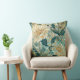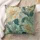 Beautiful Blooming Flowers with Green Gold Pattern Throw Pillow