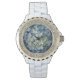 Eine wunderbare Damenuhr mit weißem Armband und grün-weiß-kariertem Ziffernblatt. Trägt sich ganz fabelhaft. Exzellenter Druck, sehr klare Farben. Schönes Design.