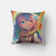 Schönes Anime-Mädchen mit Regenbogen-Hintergrund, Farben verwendet sind pink, aquamarin, orange, blau, lila und blau. Niedliche und farbenfrohe Kinderkünstlerin. Generatviekonzent