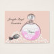 Hübsche Vintage, inspirierte Parfüm-Zerstäuber-Flasche auf rosa-weißem Hintergrund; eine schicke, doppelseitige Visitenkarte, geeignet für viele Unternehmen, sei es Mode, Kosmetik, Make-up, Parfüm-Händler ... Einfach mit Ihren persönlichen Geschäftsdetails und ohne zusätzliche Kosten anpassen.
