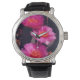 Uhr, Vintage Männeruhr mit schwarzem Lederarmband