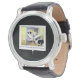 Uhr, Vintage Männeruhr mit schwarzem Lederarmband