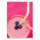 BeereSmoothie mit drei Blaubeeren und zwei Strohen auf einem rosa Hintergrund