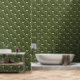 A charming pattern of bees, lush green foliage, and red berries on a dark green background, creating a vibrant and nature-inspired design.