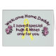 "Welcome Zuhause Daddy ist ein einfaches, aber niedliches Kinderdesign für diesen besonderen "Welcome Zuhause"-Tag. Dein Kind kann seinen Stolz zeigen, dass Papa sehen kann, wenn er Zuhause ankommt. Das Design verfügt über ein gelbes Band und zwei hübschen rosa Schmetterlinge, die die Worte "Welcome Zuhause Daddy" zeigen. Text ist schwarz umrissen in einem dunkleren Schatten von Rosa."