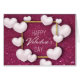 Happy Valentine's Day feierlich funkeln Glitzer bordeauxrot dunkelrote Hintergrund Illustration mit weißen realistischen 3D Herzen und goldenen Rahmen Folie. Text in modernen Schriftzeichen geschrieben.