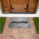 Begrüßungszeichen auf Abstrakt gebürstetem Metall Fußmatte