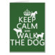 Dieses ist das klassische Kriegsplakat "behalten Ruhe und weitermachen" anders formuliert "behalten Ruhe und gehen der Hund". Es gibt Silhouetten der Hunde, die auf und um den Wörtern stehend und gesessen worden sein würde. Der Entwurf macht große Geschenke oder Geschenke für Hundebesitzer/Liebhaber oder als danken Sie für Hundehütten/Tierärzte/Rettungsdienste und Hundewanderer.