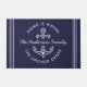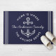 Die Einführung unserer exquisiten modernen Nautic Zitat Custom Family Name "Zuhause is where the Anchor drop" Doormat. Diese wunderschön gestaltete Türmatte verkörpert das Wesen einer ruhigen Lebensart an der Küste und feiert gleichzeitig die Bedeutung von Familie und Zuhause. Dieses Hotel besticht durch einen zeitgenössischen Stil, der moderne Ästhetik und zeitloses nautisches Ankermotiv in einem kreisförmigen Logo-Design verbindet. Im Mittelpunkt dieses Designs steht die Phrase "Zuhause Is Where the Anchor Drops", die elegant in einem frischen, minimalistischen Typografiestil auf Marineblau mit einem niedlichen Herzsymbol dargestellt wird.