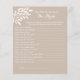 Mit diesem eleganten "How Do You Know the Bride"-Brautparty können Sie Spaß und Lachen erleben. Mit einem minimalistisch-beigen Hintergrund mit zarten weißen Akzenten aus Blattleafie lädt diese Spielkarte die Gäste ein, ihr Wissen über die Braut zu testen. Mit ihren vielfältigen Fragen von Lieblingsfarben bis zu ersten Datteln ist es der perfekte Eisbrecher, um alle zusammenzubringen. Ideal für moderne, rustikale oder naturlich inspirierte Brautpartys ist dieses Spiel ein unvergesslicher Treffpunkt!