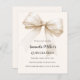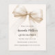 Ein zartes beige, cremefarbenes Dekor, das mit einem großen Bogen geschmückt ist. Personalisieren und fügen Sie einen Namen und Party-Details hinzu. 1 Blatt = 1 Einladung mit Druckkante bis Kante.