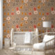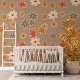 Dieses Design präsentiert sich in warmen Orangen-, Rost-, Pfirsichbeige- und Grautönen mit einem schönen, modernen Blumenmuster, das vor einem erdigen braunen Hintergrund ein Set bildet. Das elegante und stilvolle Design verkörpert einen charmanten botanischen Geist, der sich perfekt für Künstler, Dekorateure, Trendsetter und diejenigen eignet, die eine Mischung aus Vintagem Retro und eleganten romantischen Themen schätzen. Dieses elegante und dekorative feminine Muster ist vielseitig einsetzbar und steht für eine Vielzahl von Gegenständen der modernen Wohngestaltung zur Verfügung. Es eignet sich hervorragend, um das Ambiente von Räumen wie einem Master- oder Kinderzimmer, einer Vintag inspiriert Küche oder einem Kinderzimmer zu verbessern.