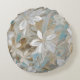 Beige Brown Aquamarin Blue Floral Rundes Kissen