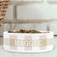 Diese personalisierte Hundeschüssel weist ein beige und weiße Gingham Karo kariertes Muster auf, mit dem Hundenamen in einem weißen Retro-SchreibmaschinenSchriftart. Das perfekte Begleiter-Accessoire, das sich perfekt in die Bauerndekoration passt.