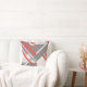 Beige Grau Rot auf weißem, diagonalem, abstraktem Kissen