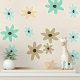 Beige türkisfarbene Teeliche Blumenmuster Tapete