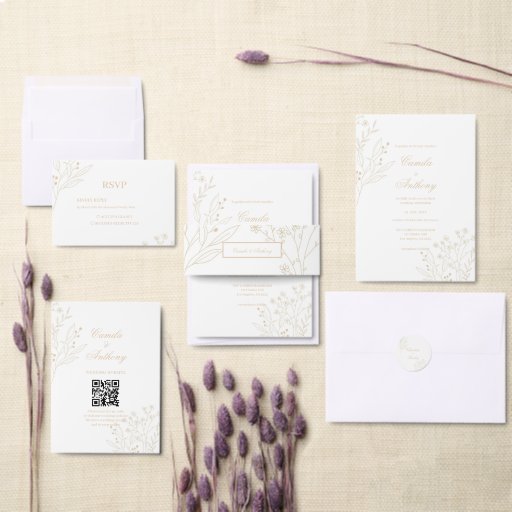 Beige White Floral Boho Wedding Geschenkpapier Set