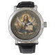 Uhr, Vintage Männeruhr mit schwarzem Lederarmband
