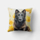A Belgian Tervuren dog looks great against a field of yellow poppies on this dog lover pillow that is sure to brighten up any room while showing your love of the tervs.